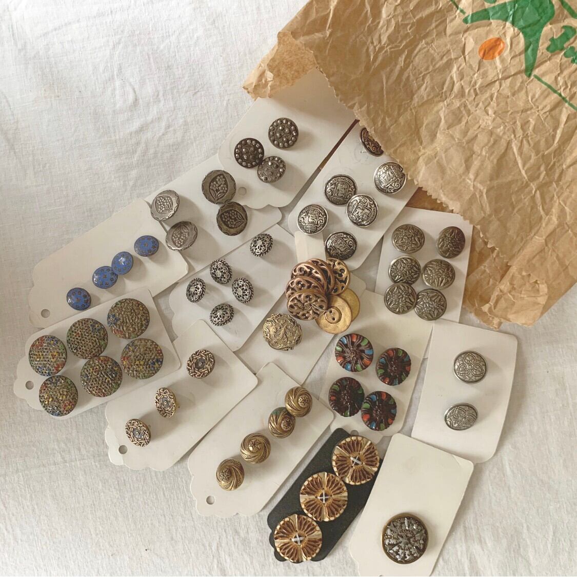 パリのヴァンヴ蚤の市で出会った様々なアンティークボタン達。お手持ちのカーディガンのボタンを付け替えてみたり、イヤリングなどにアレンジしてもかわいいと思います。