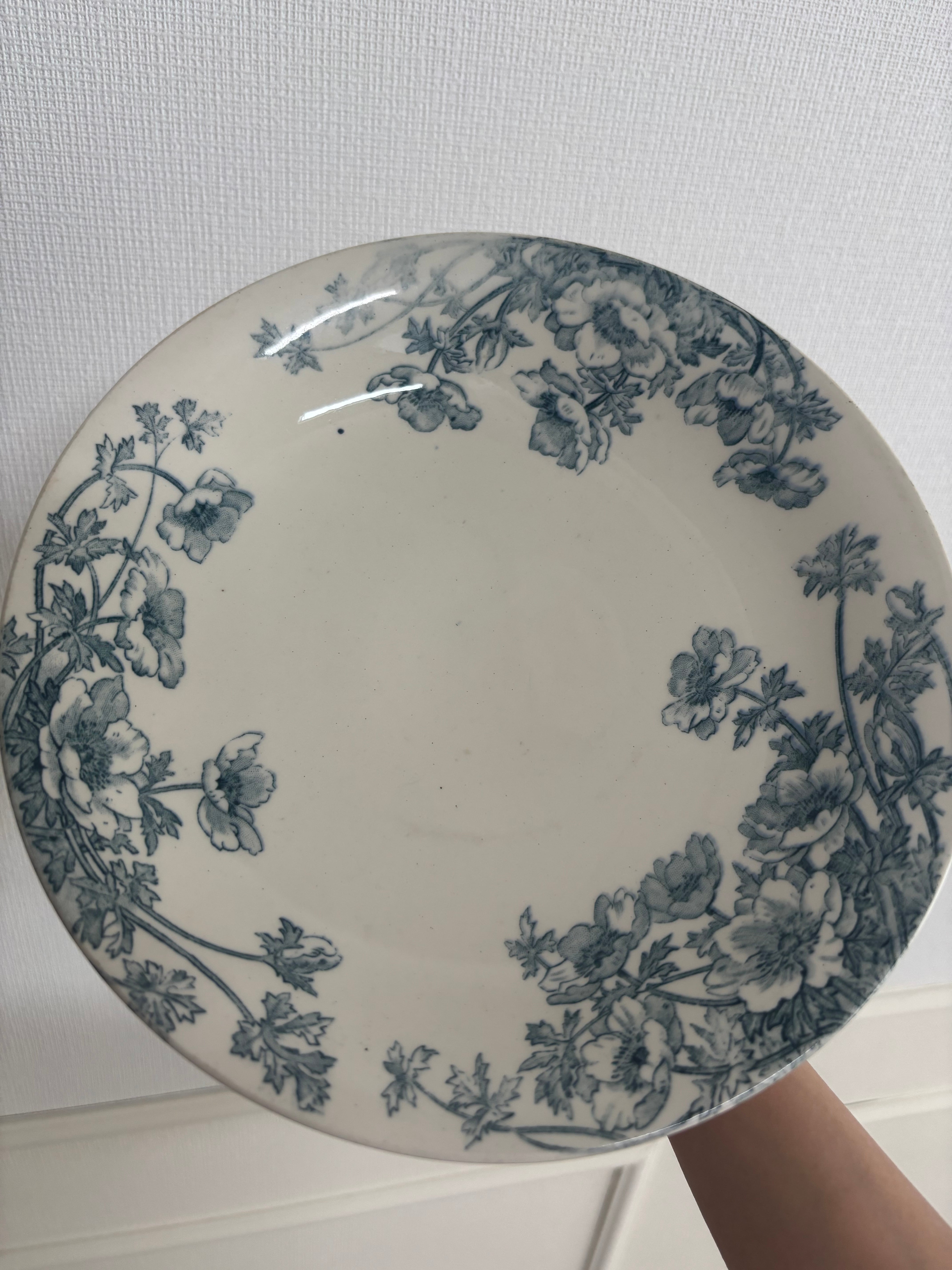 こちらは、花柄の愛らしいデザインが特徴のGIEN製アンティークのコンポティエです。フランスの食卓を彩るこの器は、デザートやフルーツを盛り付けるのにぴったりのサイズ感。美しいブルーの花模様が施されており、テーブルセッティングに華やかさを加えてくれます。